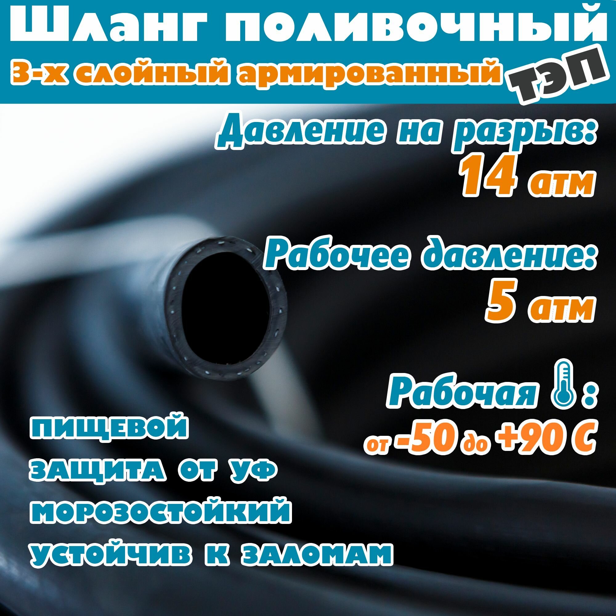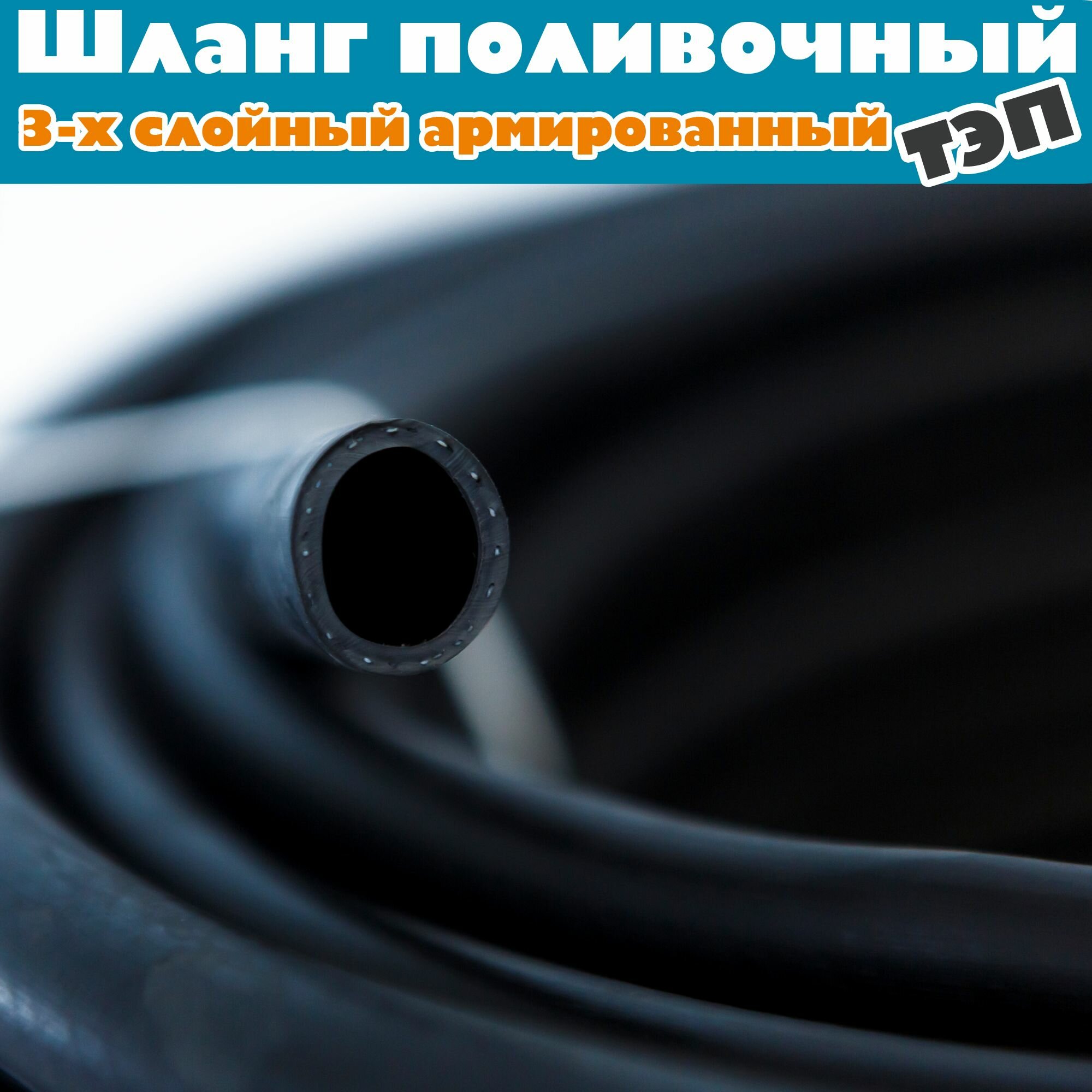 Шланг поливочный 1 1/4 дюйма 20м 32мм морозостойкий резиновый ТЭП (Термоэластопласт) армированный трехслойный защита от УФ, Черный