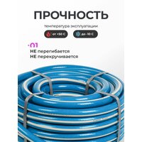Внутренний диаметр изделия составляет 20 мм, что оптимально для подачи воды на огороде, в теплице или саду. Инвентарь отлично подходит для автомойки машин. Очень удобно поливать цветы и растения. Морозостойкий и может эксплуатироваться от -10°C до +50 градусов Цельсия.