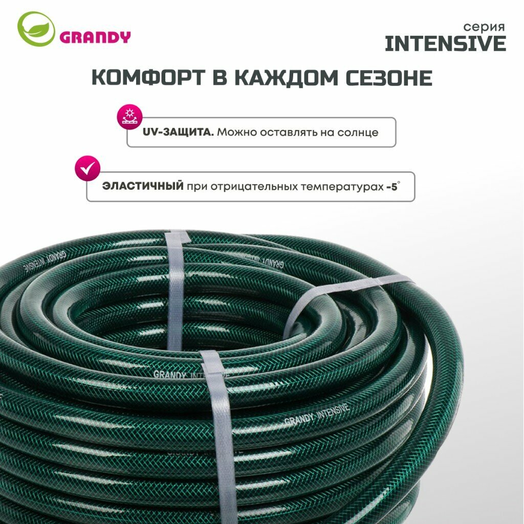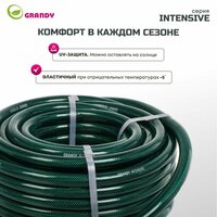 Шланг поливочный армированный Grandy Intensive не подвержен локальным вздутиям, не образует трещин и изломов. Проверен на герметичность, концы шланга запаяны под давлением. Шланг соответствует стандарту ISO 9001. Устойчив к прямым солнечным лучам и ультрафиолетовому излучению. Устойчив к коррозии и истиранию, не токсичен и не содержит солей кадмия. Не образует водорослей и других наслоений на внутренних поверхностях шланга. Эластичный, усиленный трехслойный шланг. Не токсичен — не содержит солей кадмия. Три слоя: внешний прозрачный слой ПВХ, внутренний черный слой ПВХ + высокопрочный текстильный корд. Диапазон допустимой температуры: от -5°С до +65°С.«Шланг поливочный, 3/4 ', диаметр 20 мм, 15 атм, армированный, 25 м, 3 слоя, Grandy, Intensive, ПВХ, усиленный, AGL063425/PGH-19A-25» можно купить мелким, средним и крупным оптом по привлекательным ценам благодаря тому, что мы сотрудничаем с российскими и международными производителями напрямую, без посредников. Техническая информацияДлина, м 25 Диаметр, мм 20 Максимальное давление, атм 15 Материал ПВХ Бренд Grandy Страна производства Китай Вид шланга поливочный Армированный да Количество слоев 3 Диаметр, дюйм 3/4 Удлиняющийся нет Сегментированный нет