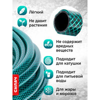 Шланг имеет зеленый цвет, который гармонично впишется в любой ландшафтный дизайн.