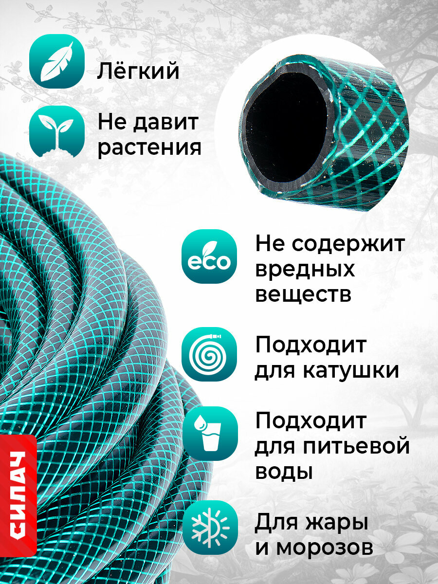 Выбирая шланг поливочный 3/4 садовый ПВХ "силач" ЭКО, вы получаете надежный и долговечный инструмент для полива растений на вашем участке, который обеспечит вам комфорт и удовольствие от работы в саду.