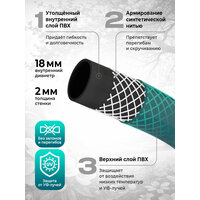 Шланг выполнен из прочного и экологически чистого материала - ПВХ, что обеспечивает его долговечность и безопасность для окружающей среды. Толщина стенки составляет 1,5 мм, что гарантирует устойчивость к механическим повреждениям и долговечность.