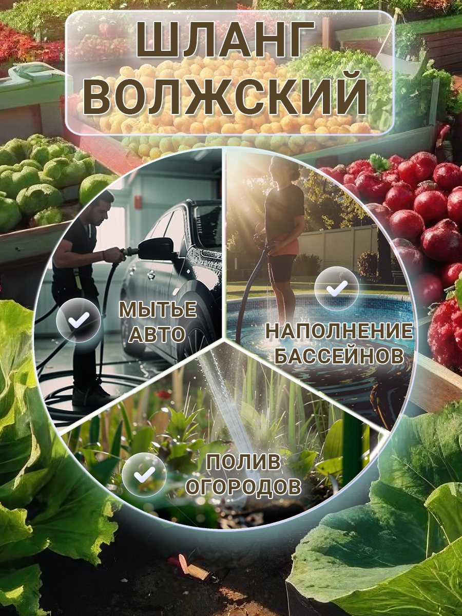 Шланг поливочный Волжский 25 метров с диаметром 20 мм - идеальное решение для полива вашего сада или огорода. Этот резиновый шланг напорный обладает высокой износостойкостью, что позволяет пользоваться им долгое время. Нитяной каркас делает его более прочным и надежным в эксплуатации. Садовый шланг для полива имеет удобную длину 25 метров, что позволяет охватить большую площадь без необходимости постоянного перемещения. Благодаря диаметру 20 мм, он обеспечивает достаточный напор для эффективного полива растений и насаждений. Этот резиновый шланг также подходит для использования в автомойке или для других целей, где требуется подача воды. Гибкая конструкция позволяет легко маневрировать со шлангом и удобно хранить его после использования. Не теряйте время на поиск качественного шланга для полива - приобретите шланг поливочный 25 метров 20 мм и наслаждайтесь удобством и эффективностью его использования. Ваш сад и огород будут вам благодарны за такой заботливый подход к поливу растений.