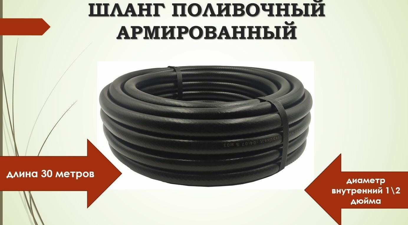 Шланг поливочный армированный из ПВХ 33х33х13 см, 8 АТМ, прочный, с трехслойной структурой - для подачи воды на садовые участки, полива и ухода за растениями и газонами