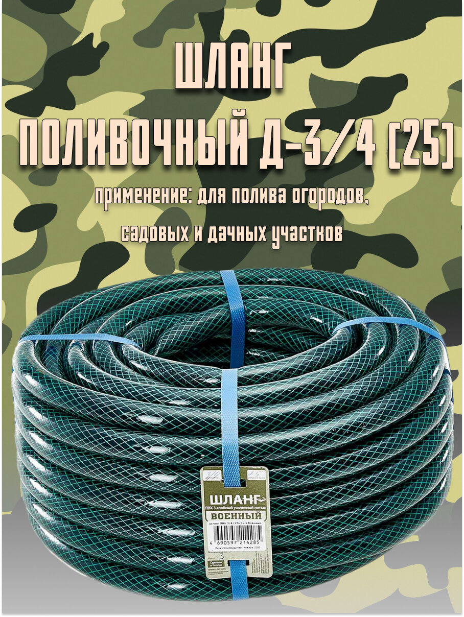Купить Шланг поливочный, диаметр 3/4″, длина 25 м «Военный» армированный, 3-х слойный с доставкой по всей России. Шланг поливочный, диаметр 3/4″, длина 25 м «Военный» армированный, 3-х слойный: сравнение цен, характеристики, фото, актуальное наличие и цены.