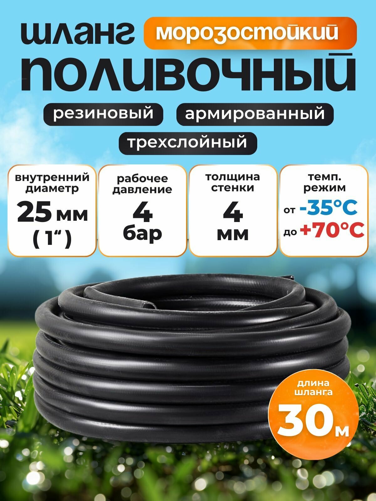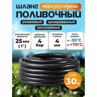 Шланг поливочный резиновый армированный нитью 25мм 30м+два хомута Толщ. стенки 4мм морозостойкий (t от -35 С до +70 С): сравнение цен, характеристики, фото, актуальное наличие и цены.