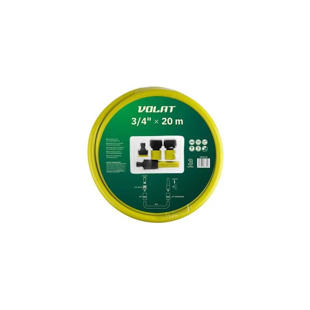Купить Волат Шланг поливочный 3/4 20м с компл. для орошения 54134-20 с доставкой по всей России. Волат Шланг поливочный 3/4 20м с компл. для орошения 54134-20: сравнение цен, характеристики, фото, актуальное наличие и цены.
