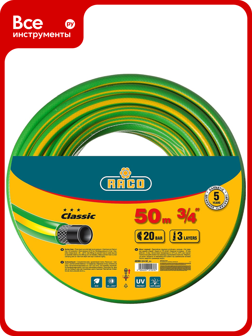 Выбирая шланг садовый Raco CLASSIC, вы получаете надежный и качественный продукт, который станет незаменимым помощником в уходе за вашим садом.