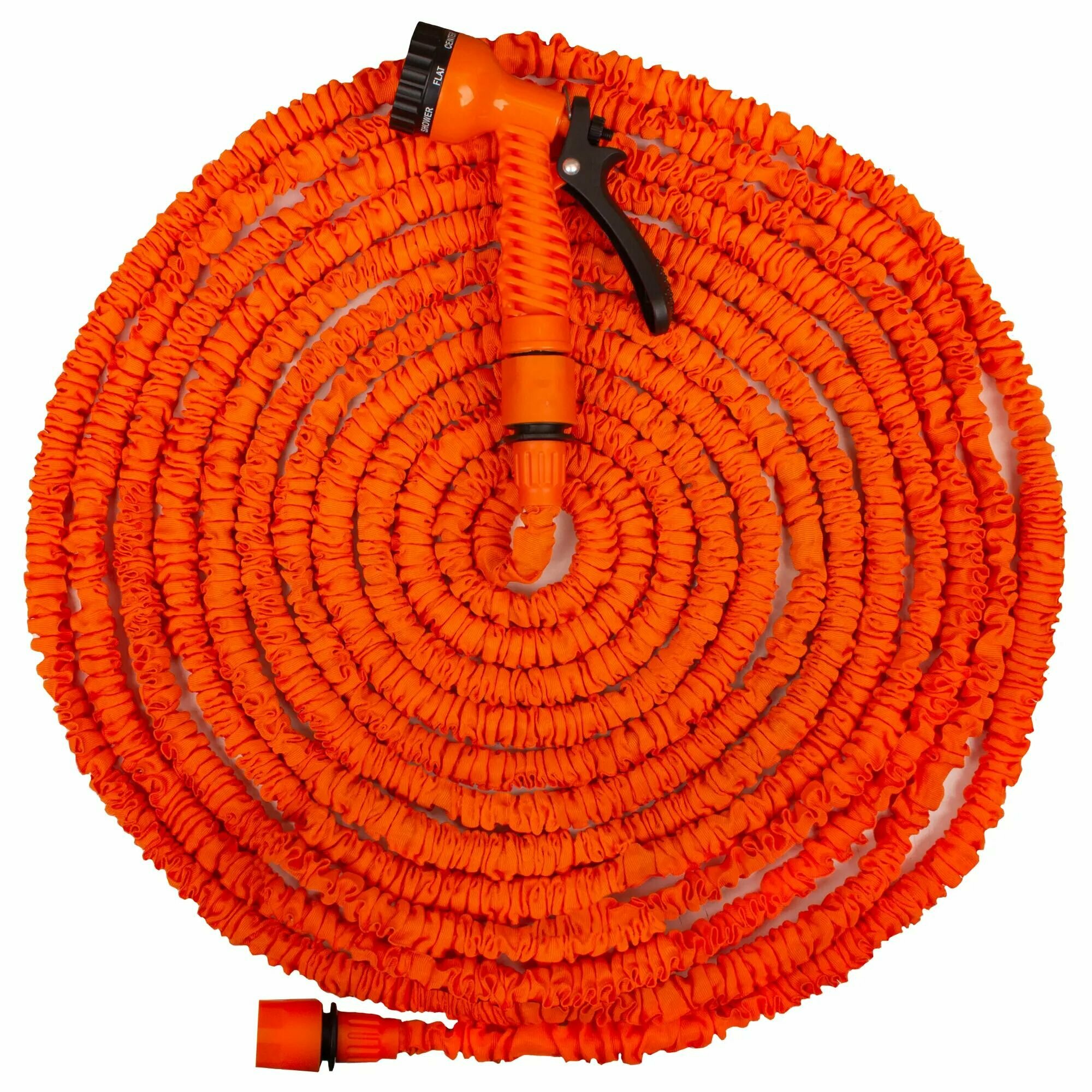 Шланг растягивающийся — отличное решение при недостатке места для хранения. При наполнении водой его длина увеличивается в несколько раз — до 30 м. Выдерживает давление до 6 бар. Изготовлен из латекса.