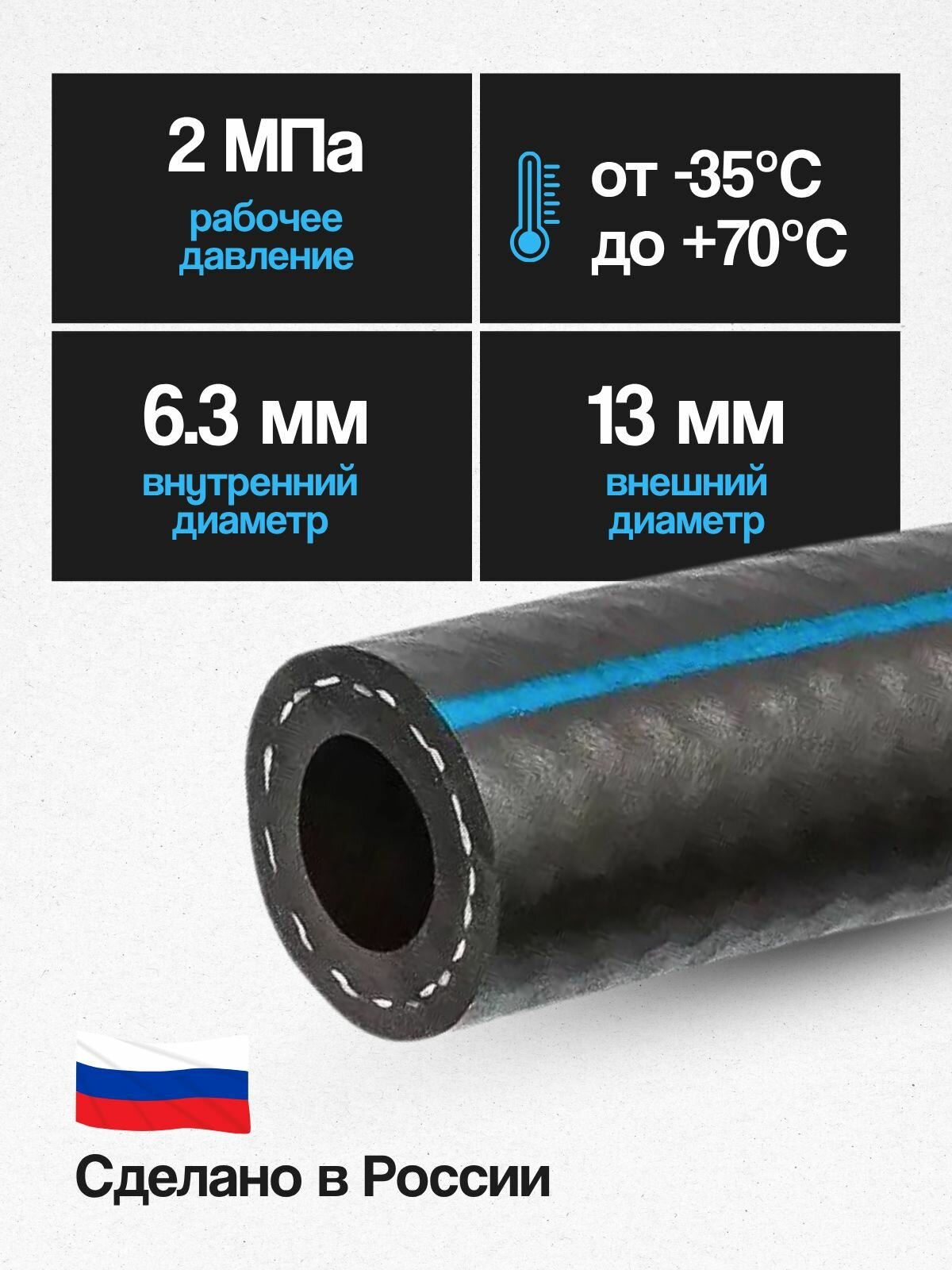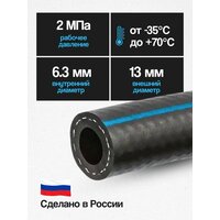Используется для подачи кислорода, ацетилена, воздуха и воды. Благодаря высокой прочности и долговечности отлично подходит для дачных газовых баллонов, компрессоров и т. д. а так же для полива. При использовании не перекручивается, заломы не остаются. В зимний период остается гибким и эластичным, а вода летом не зацветает и водоросли не образуются. Для кислородных шлангов, имеющих внутренний диаметр 6,3 допустимое давление до 4 МПа (40бар/40атм.)