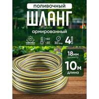 Для полива садового участка. Диаметр 18 мм (3/4). Длина 10 м. Устойчивость к перегибам, спутыванию и перекручиванию. Устойчивость к давлению и деформации, стабильность формы. Давление на разрыв 30 бар. Устойчивый к ультрафиолетовому излучению шланг можно хранить на открытом воздухе. Он не содержит опасных веществ и тяжелых металлов (менее 0,1%).