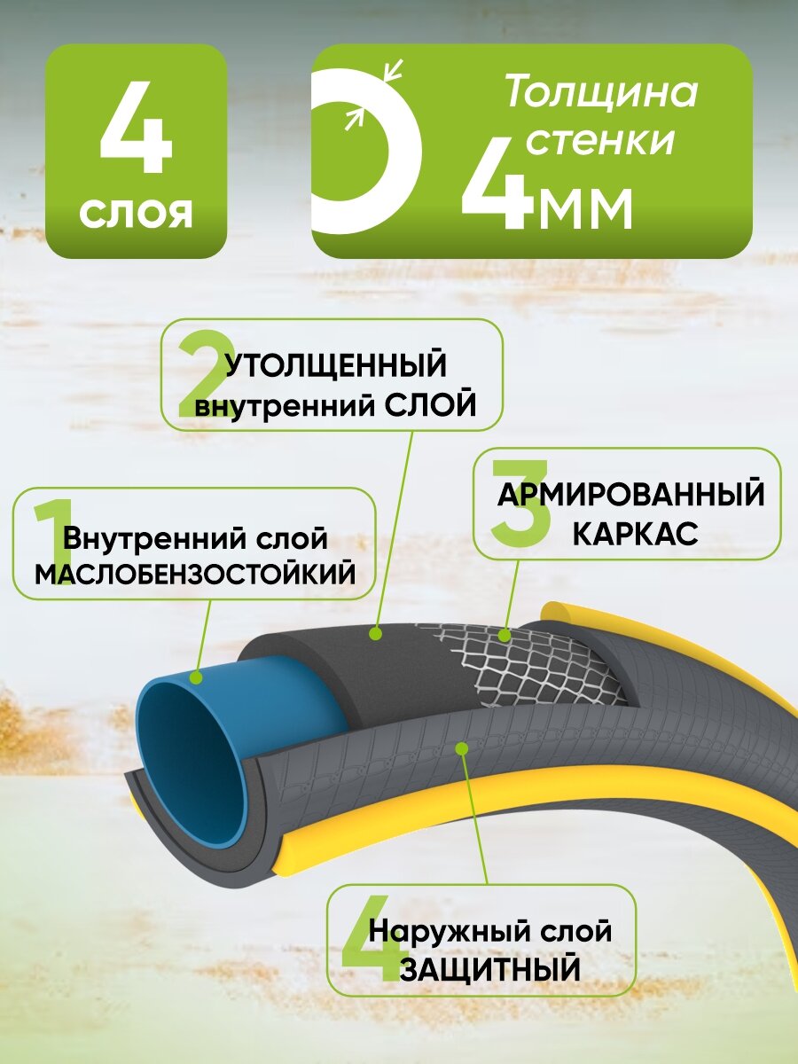 Купить Шланг садовый ПВХ «Профессионал» 1/2, 4 м / Шланг поливочный ПВХ / Рукав садовый усиленный с доставкой по всей России.