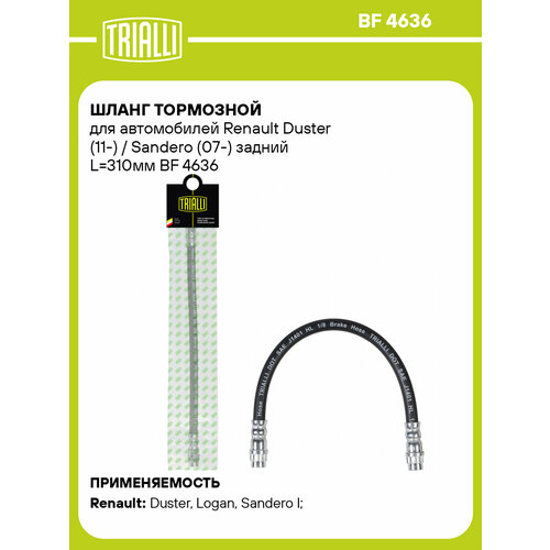 Шланг тормозной для автомобилей Renault Duster (11-) / Sandero (07-) задний L=310мм