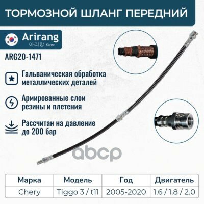 Шланг тормозной передний Chery (Tiggo T-11/Tiggo 3) Arirang арт. ARG20-1471: сравнение цен, характеристики, фото, актуальное наличие и цены.