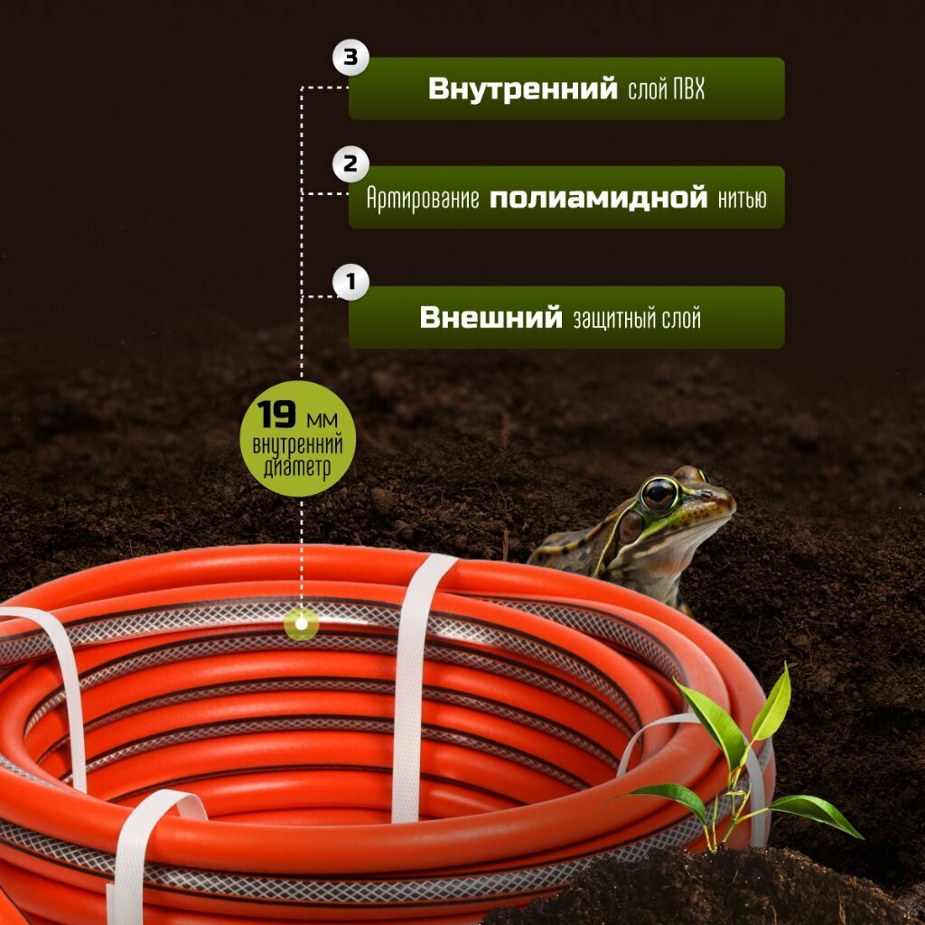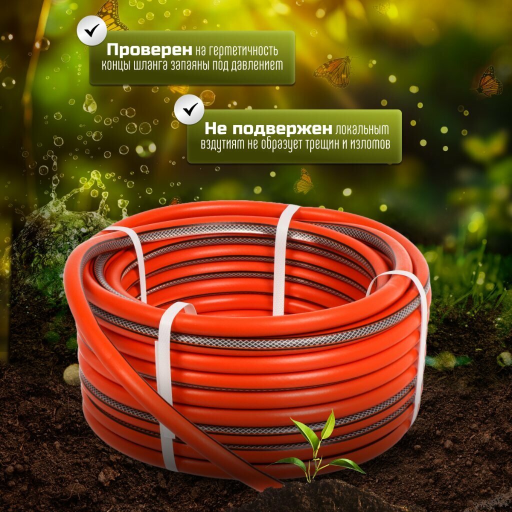 Поливочный шланг Cicle Жук Классик 3/4", 3-х слойный, 25 м подходит для ухода за дачными растениями. Изготовлен из термоэластопласта, полимерного материала, объединившего в себе эластичность каучука и прочность ПВХ, при этом лишенный их недостатков: он более легкий, не боится даже экстремального мороза, не деградирует под воздействием солнца или сухого климата. Шланг обладает высоким рабочим давлением, устойчивостью к скручиванию и перегибам, выдающимися параметрами морозостойкости (до -30°C). Кроме того, конструкция усилена полиамидной нитью. Технические характеристики: Материал: термоэластопласт Max давление: 8 бар Допустимый диапазон температур: от -30 до +40 °С Min температура эксплуатации: -30 °С Длина: 25 м Диаметр: 3/4 дюйм Внутренний диаметр6 19 мм Внешний диаметр: 22 мм Толщина стенки шланга: 3 мм Количество слоев: 3 шт. Цвет: черный/оранжевый Тип: армированные Пищевой: нет Рожина бренда: Россия Информация об упаковке: Единица товара: Штука Вес, кг: 6.78 Длина, мм: 350 Ширина, мм: 350 Высота, мм: 250 Шланг поливочный ЖУК Классик 3/4 3-х слойный - 25 м_47000088967