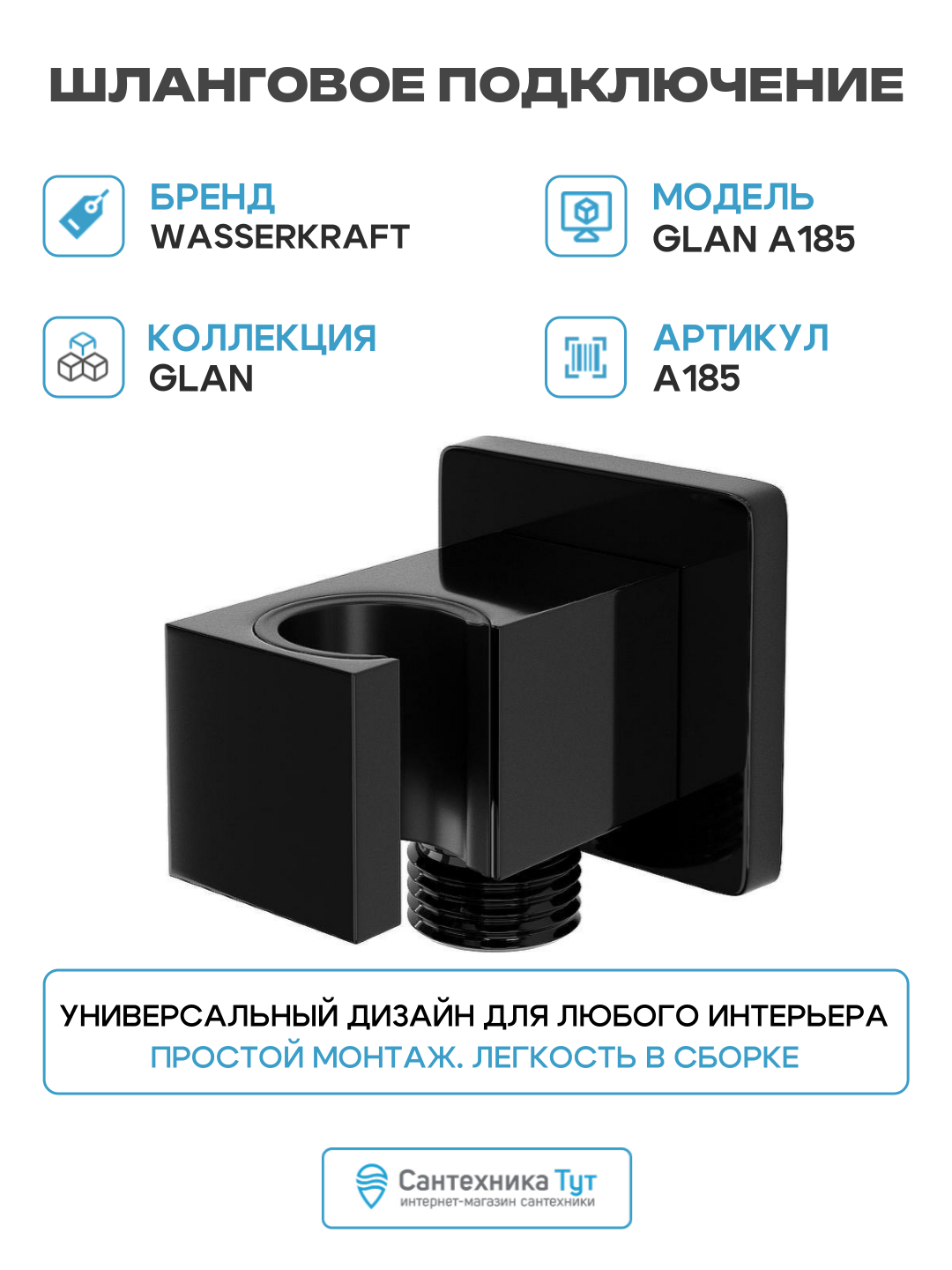 Шланговое подключение WasserKRAFT Glan A185 Черное глянцевое латунь на стену: сравнение цен, характеристики, фото, актуальное наличие и цены.