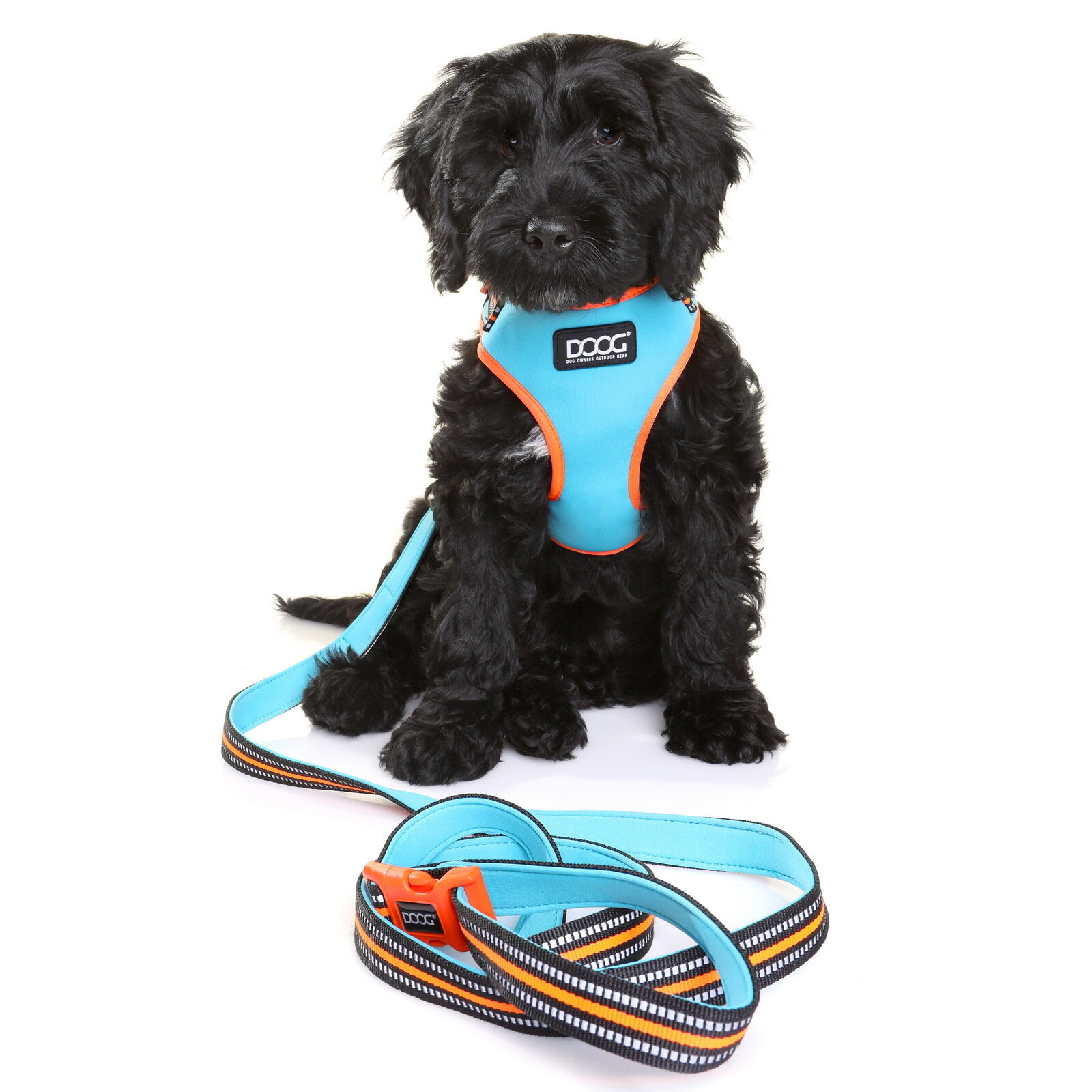 Купить Шлейка для собак DOOG «NEOFLEX BEETHOVEN», голубой с оранжевым кантом, S (Австралия) с доставкой по всей России.