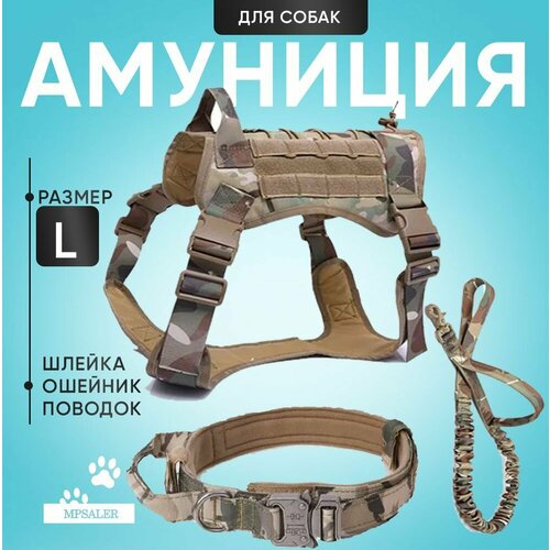 Шлейка для собак, средних и крупных пород. Тактическая с ручкой, ошейником и поводком. Размер L, Камуфляж: сравнение цен, характеристики, фото, актуальное наличие и цены.