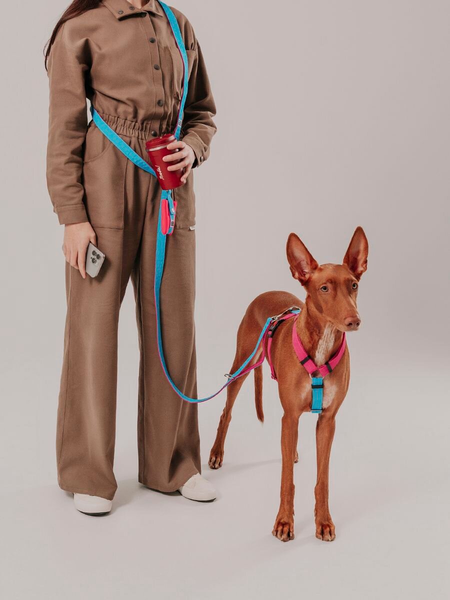Шлейка надевается через голову и застегивается по бокам с двух сторон. Это делает процедуру одевания максимально быстрой и приятной. Оснащена прочными застежками фастекс с фиксатором (защитой от случайного раскрытия) с разрывной нагрузкой 114 кг и высокопрочной металлической фурнитурой.