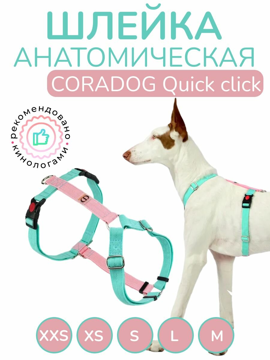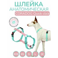 Купить Шлейка прогулочная анатомическая для мелких пород собак и кошек, CORADOG Quick click, размер XXS, цвет розовый, мятный с доставкой по всей России.