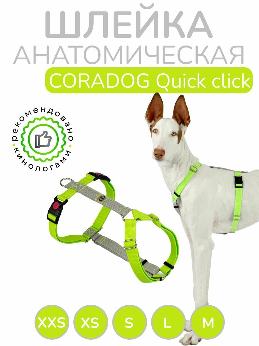 Шлейка прогулочная анатомическая для мелких пород собак и кошек, CORADOG Quick click, размер XXS, цвет салатовый, серый: сравнение цен, характеристики, фото, актуальное наличие и цены.