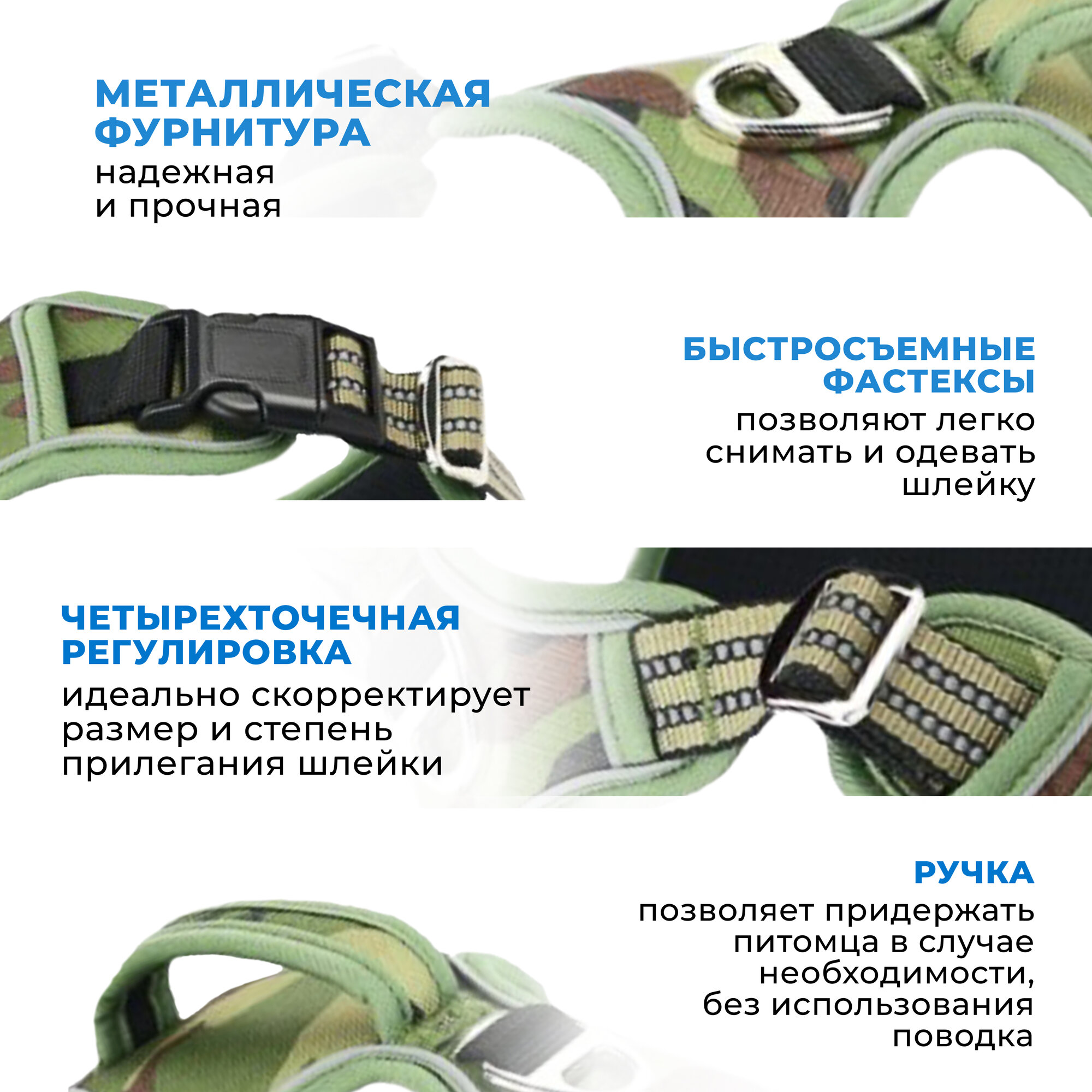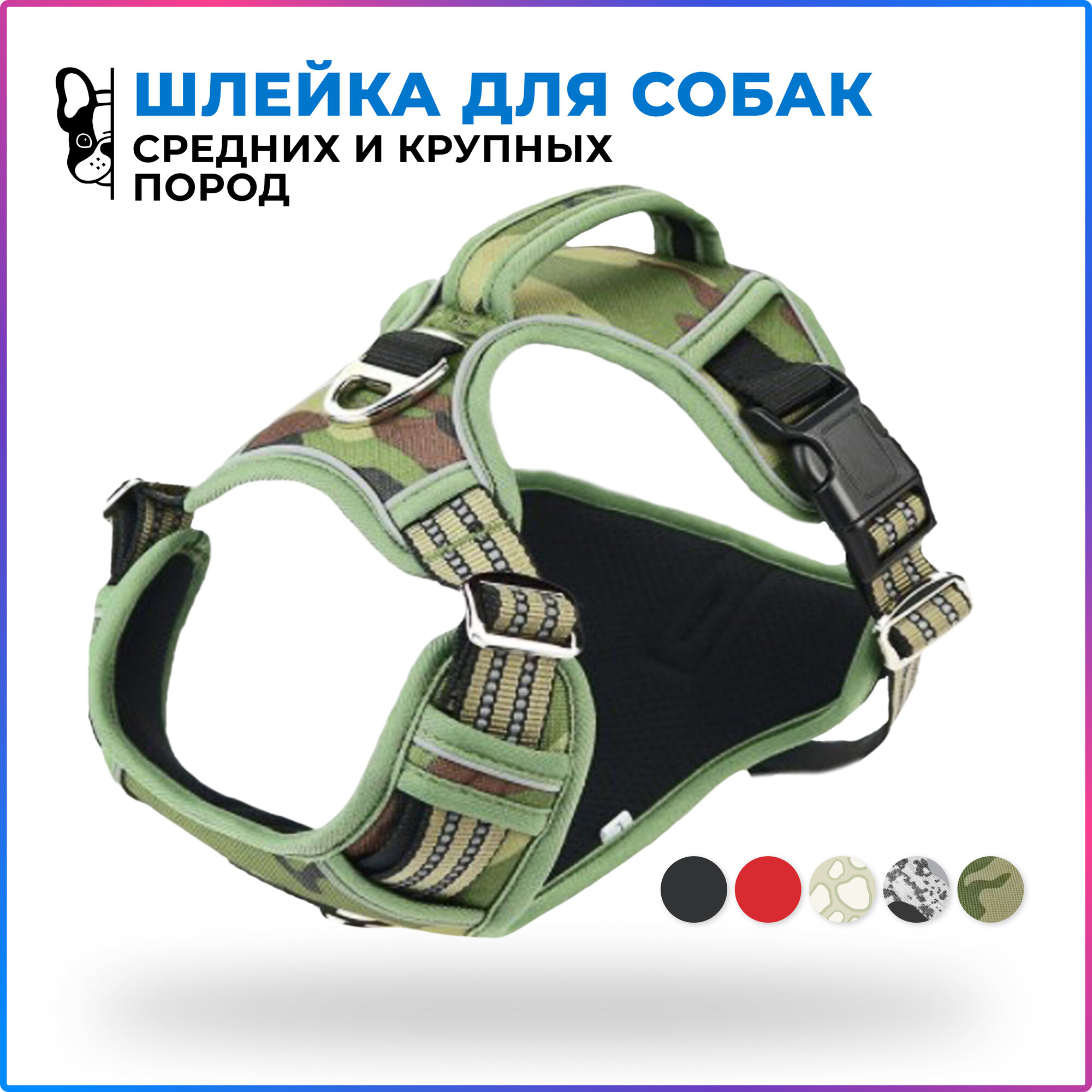 Купить Шлейка прогулочная для собак средних и крупных пород / хаки (камуфляж) / размер M с доставкой по всей России.