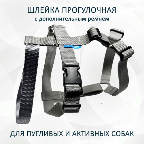 Купить Шлейка прогулочная totemica для собак с дополнительным ремнем «Серая» с регулировкой размера. Safe. XL с доставкой по всей России.