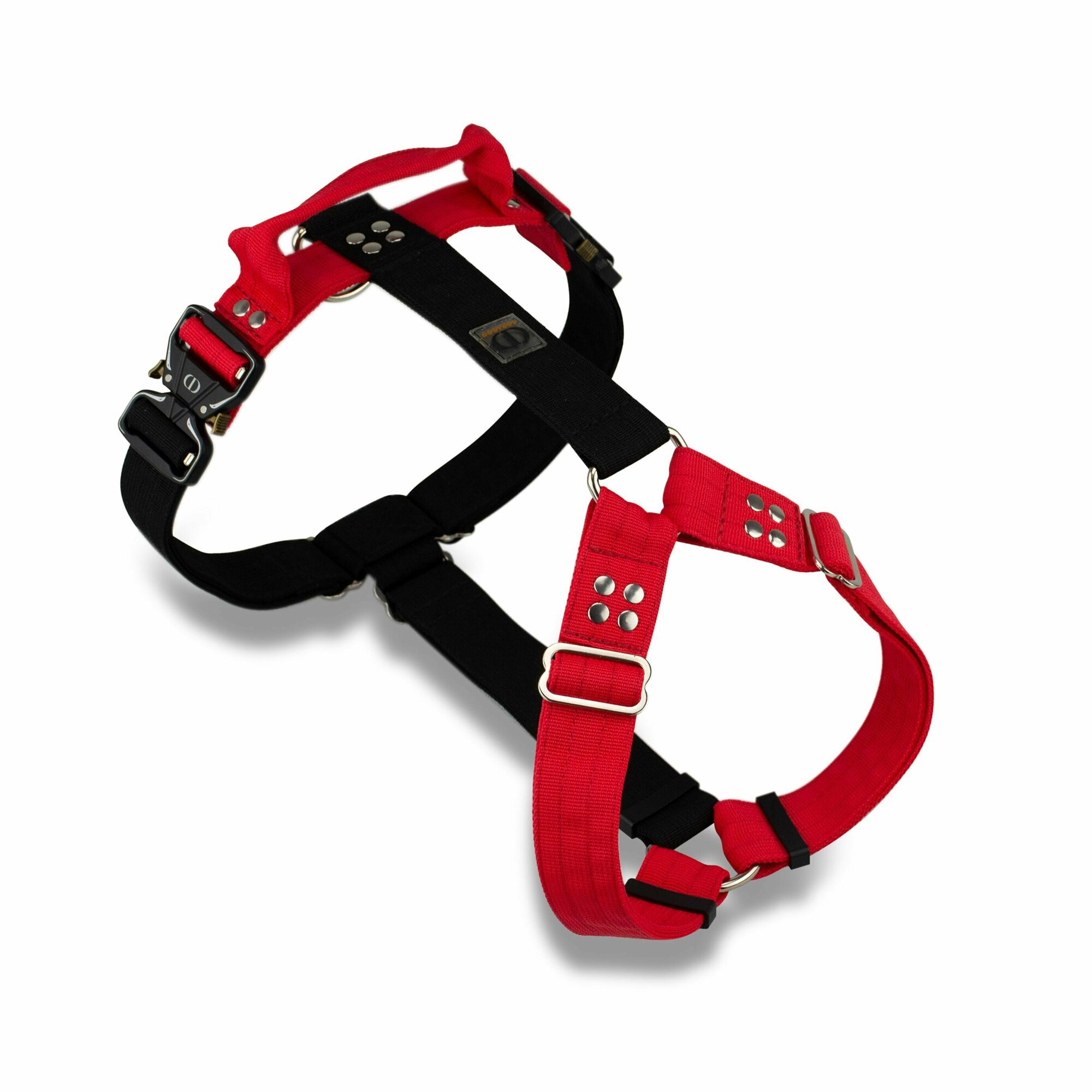 Шлейка надевается через голову и застегивается по бокам с двух сторон. Это делает процедуру одевания максимально быстрой. Мощные металлические застежки фастекс выдерживают любые нагрузки.