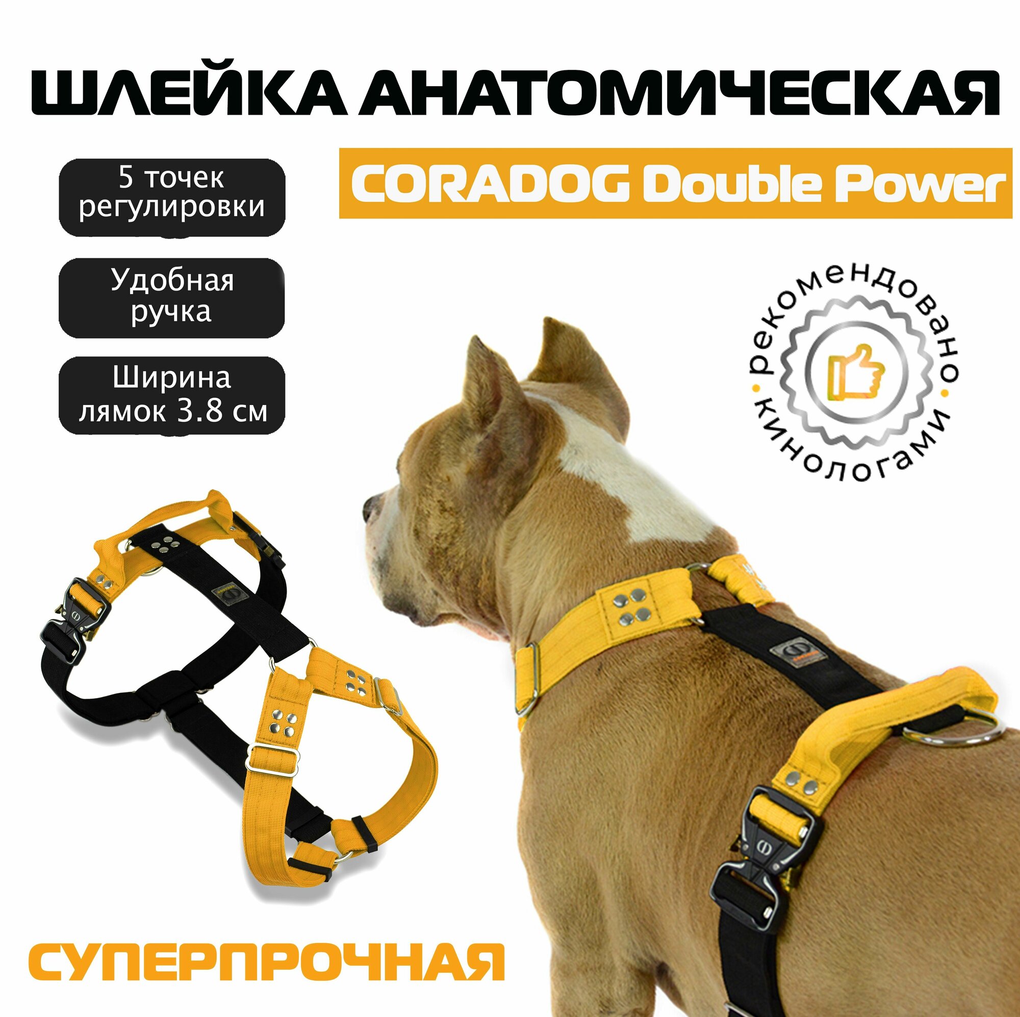 Шлейка с ручкой для собак прогулочная анатомическая, для ЗКС, тренировок, CORADOG Double Power для крупных и средних собак, размер M, черный, желтый: сравнение цен, характеристики, фото, актуальное наличие и цены.