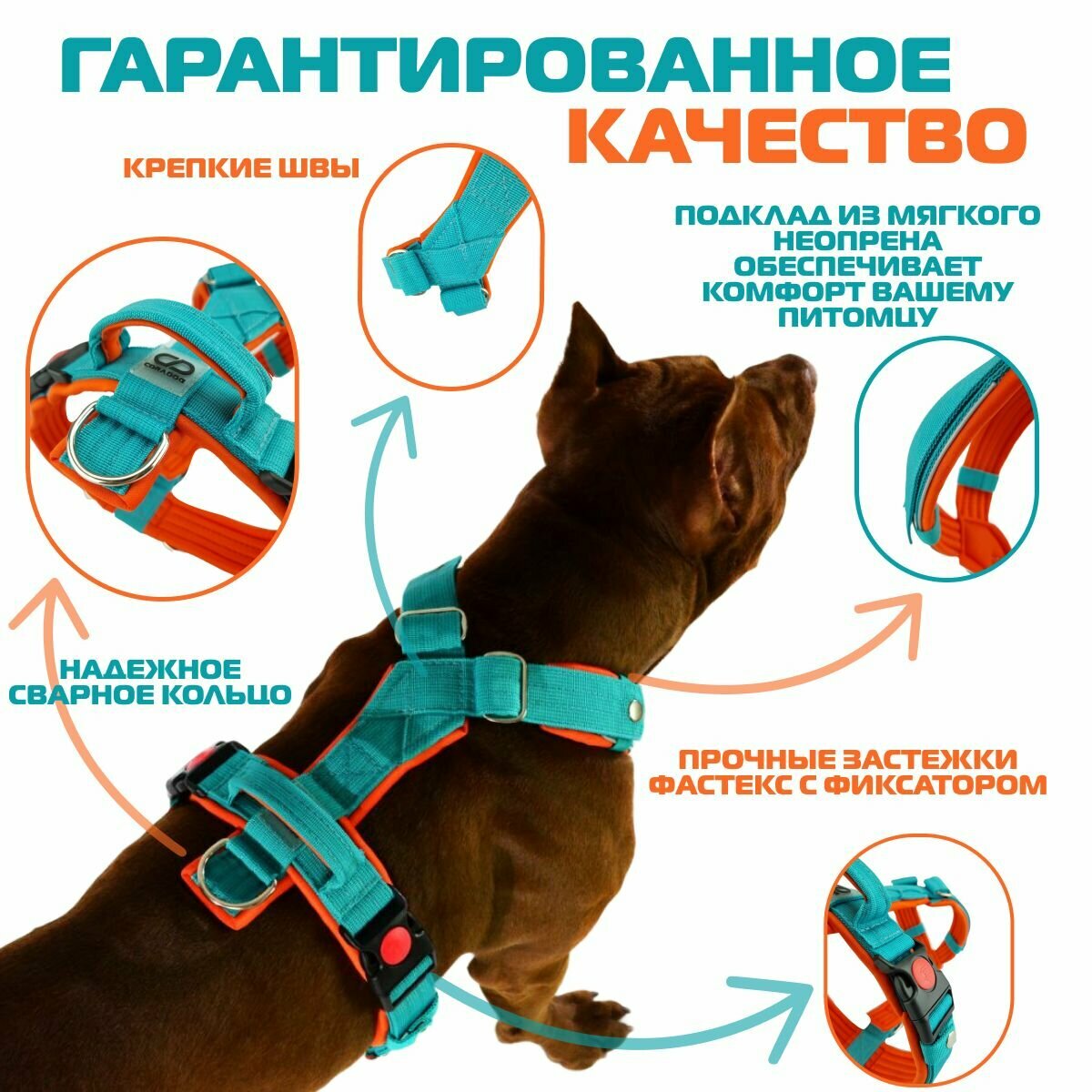 Шлейка с ручкой и мягким подкладом для больших собак прогулочная анатомическая, CORADOG M 2.0.2. , размер R7, цвет бирюзовый, оранжевый: сравнение цен, характеристики, фото, актуальное наличие и цены.