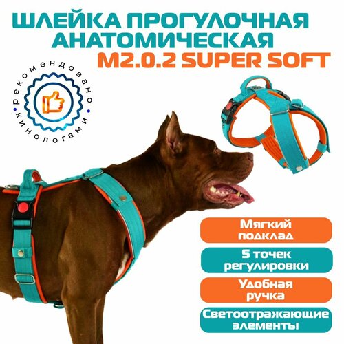 Шлейка с ручкой и мягким подкладом для больших собак прогулочная анатомическая, CORADOG M 2.0.2. , размер R8, цвет бирюзовый, оранжевый: сравнение цен, характеристики, фото, актуальное наличие и цены.