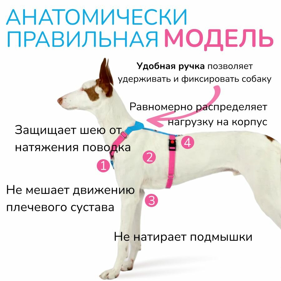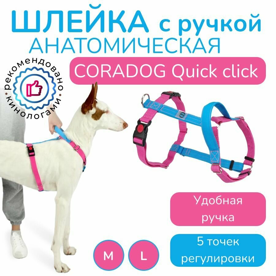 Шлейка с ручкой прогулочная анатомическая для средних и крупных пород собак, CORADOG Quick click, размер M, цвет голубой, ярко розовый: сравнение цен, характеристики, фото, актуальное наличие и цены.
