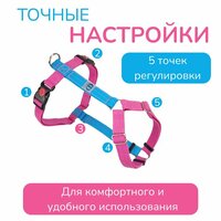 Купить Шлейка с ручкой прогулочная анатомическая для средних и крупных пород собак, CORADOG Quick click, размер M, цвет голубой, ярко розовый с доставкой по всей России.