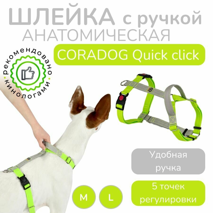 Шлейка с ручкой прогулочная анатомическая для средних и крупных пород собак, CORADOG Quick click, размер M, цвет салатовый, серый: сравнение цен, характеристики, фото, актуальное наличие и цены.