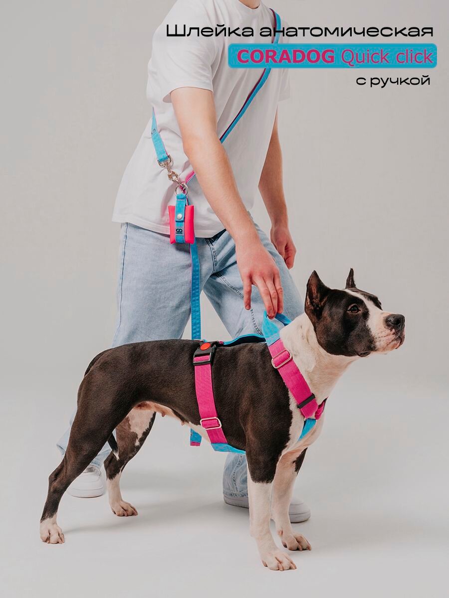 Купить Шлейка широкая с ручкой прогулочная анатомическая для средних и крупных пород собак, CORADOG Quick click, размер L, цвет голубой, ярко розовый с доставкой по всей России. Шлейка широкая с ручкой прогулочная анатомическая для средних и крупных пород собак, CORADOG Quick click, размер L, цвет голубой, ярко розовый: сравнение цен, характеристики, фото, актуальное наличие и цены.