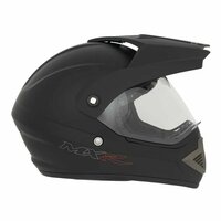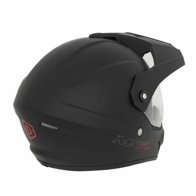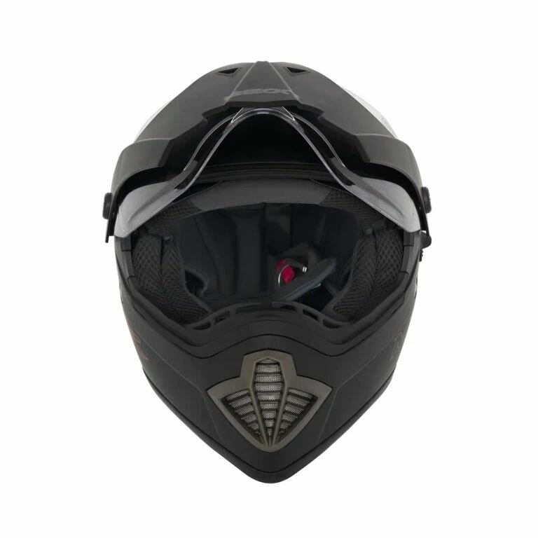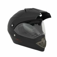Туристический шлем класса Adventure, пригодный для внедорожной езды и использования на дорогах общего пользования. Гармонично совмещает в себе кроссовый козырёк и визор, закрывающий весь проём. Выполнен из прочного пластика ABS. Отличается небольшим весом и продуманной вентиляцией. Сложная форма скорлупы шлема сделана для увеличения прочности и жёсткости оболочки, она обеспечивает низкий уровень шума и хорошую аэродинамику на высоких скоростях. При использовании кроссовой маски надёжно фиксирует её резинку, не давая ей сползать ни вниз, ни вверх. Материал изготовления – вязкий ударопрочный пластик ABS. Козырёк регулируется по высоте. Прозрачный визор из крепкого поликарбоната с упрочняющим внешним слоем, препятствующим появлению царапин, при поднятии прячется под козырёк, зачищающий его от повреждения ветками и камнями при внедорожном использовании. Есть внутренний тёмный выдвижной визор от солнца, прячущийся в капсуле шлема. Приточный канал вентиляции расположен на подбородочной дуге. Вытяжной канал расположен в зоне аэродинамического разрежения под спойлером на затылке. Ударопоглощающая капсула шлема сделана из пенопласта EPS, в котором проложены вентиляционные каналы для охлаждения головы и испарения влаги. Подкладка шлема сделана из не задерживающего влагу гипоаллергенного материала с высокой воздухопроницаемостью. Она полностью съёмная и допускает машинную стирку при 30 градусах.