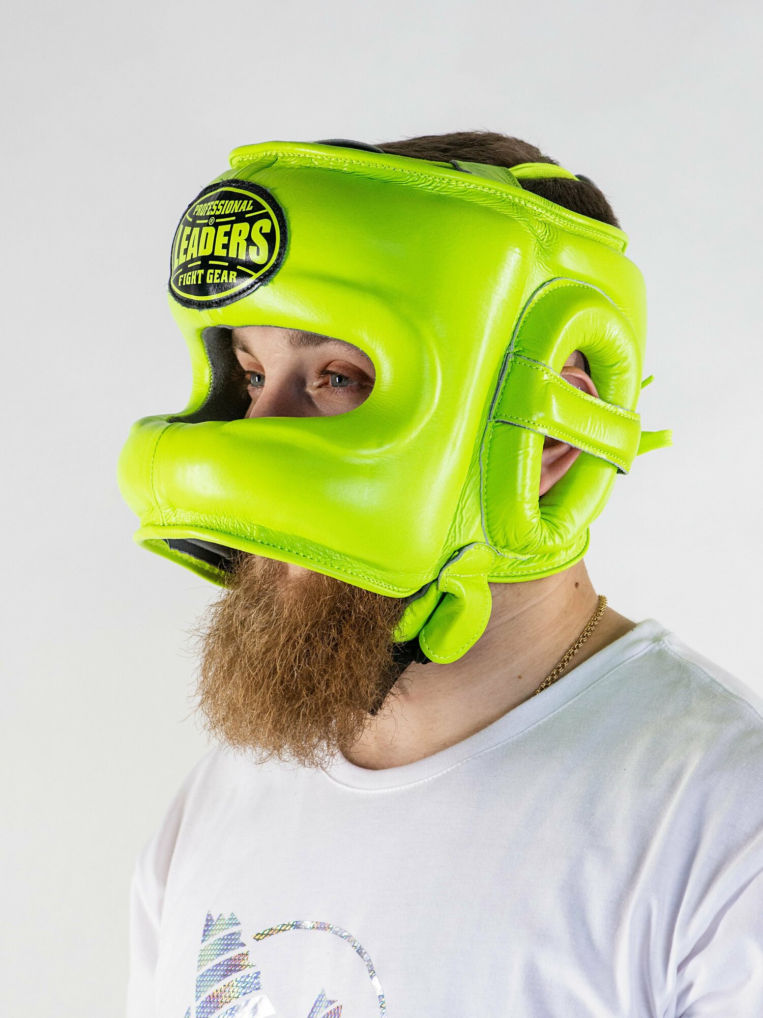 Купить Шлем защитный LEADERS , тренировочный/ экипировка для бокса/ шлем боксерский с бамперной защитой GN (салатовый) (L/XL) с доставкой по всей России.