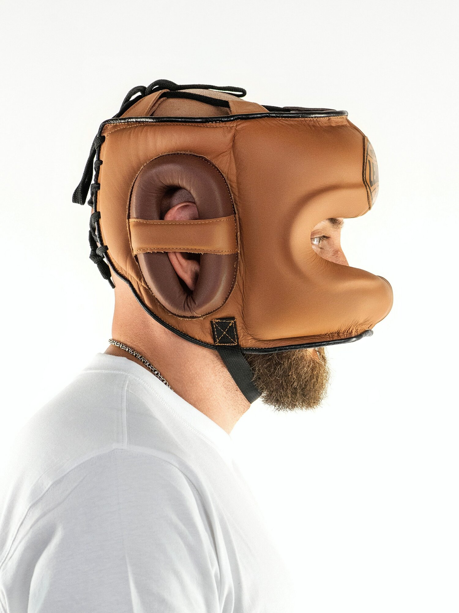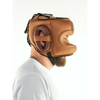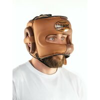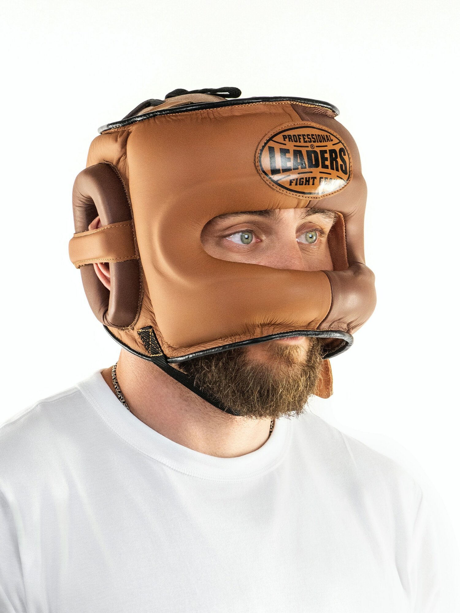 Шлем боксерский с бамперной защитой LEADERS премиальной линейки Heritage. Основная задача шлема с бамперной защитой это максимизация защиты головы, а главное, лица спортсмена, во время проведения спаррингов. Для выполнения этой задачи мы сделали металлическую рамку специальной, фирменной конфигурации для непревзойденной защиты. Рамка обеспечивает максимальную защиту, и высокий уровень обзорности. Специально подобранный, трехслойный пенный наполнитель, из материалов различной плотности, обеспечивает гашение и распределение энергии ударов, снижая нагрузку на голову спортсмена. В шлеме предусмотрена дополнительная защита ушных зон. Низкий вес шлема снижает утомляемость спортсмена даже в долгих подготовительных спарринг сессиях. Бамперный шлем традиционно выполнен из высококачественной 100% бархатной натуральной кожи премиальной выделки с внутренней отделкой из технологичной искусственной замши, что обеспечивает превосходный внешний вид, удобство и комфорт для бойца. Материал внутренней отделки способствует отведению тепла и влаги, а при намокании не теряет стабильной фиксации. Шлем имеет 3 типа регулировок. Сверху и в затылочной зоне регулировка на шнурке, для максимальной подгонки размера, на подбородке шлем фиксируется клипсой. Шлем с бампером идеально подходит для проведения высокоинтенсивных спаррингов профессиональных спортсменов, а также для недопущения травм лица спортсменами любого уровня. Может использоваться для защиты лица в периоды реабилитации после травм костей лица и носа. Ориентиры для подбора размера: S/M : 55 – 57 cm L/XL : 58 – 60 cm