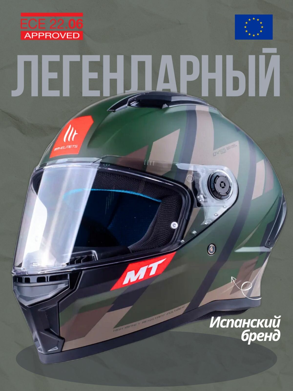 Купить Шлем для мотоцикла мотошлем MT STINGER 2 Register (L, Matt Green Military) с доставкой по всей России.