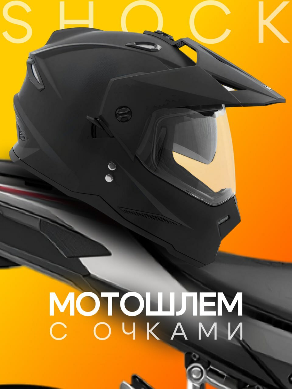 Купить Шлем для мотоцикла с очками и визором мотошлем Motard SHOCK M3, Matt Black с доставкой по всей России.