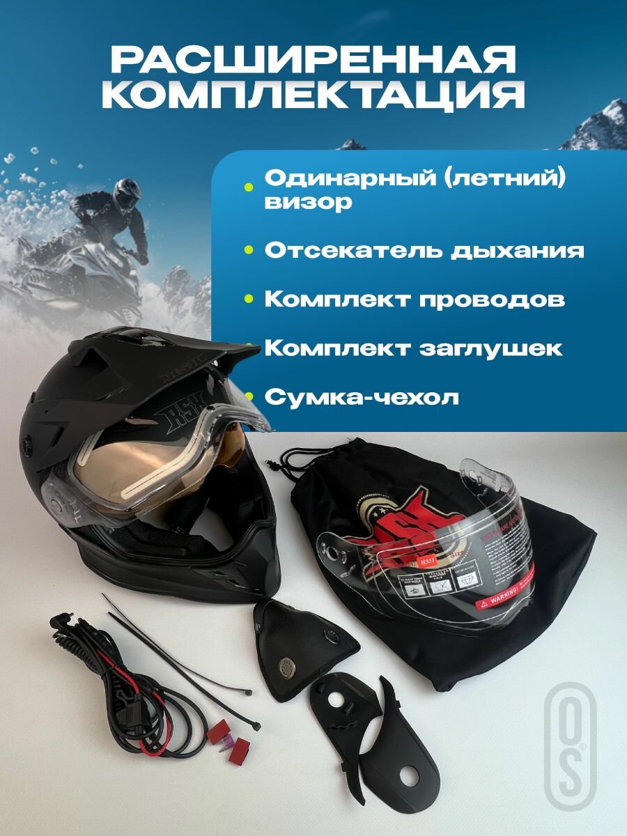 Шлем для снегохода RSX Iceman Winter двойное стекло с подогревом мотошлем черный матовый M