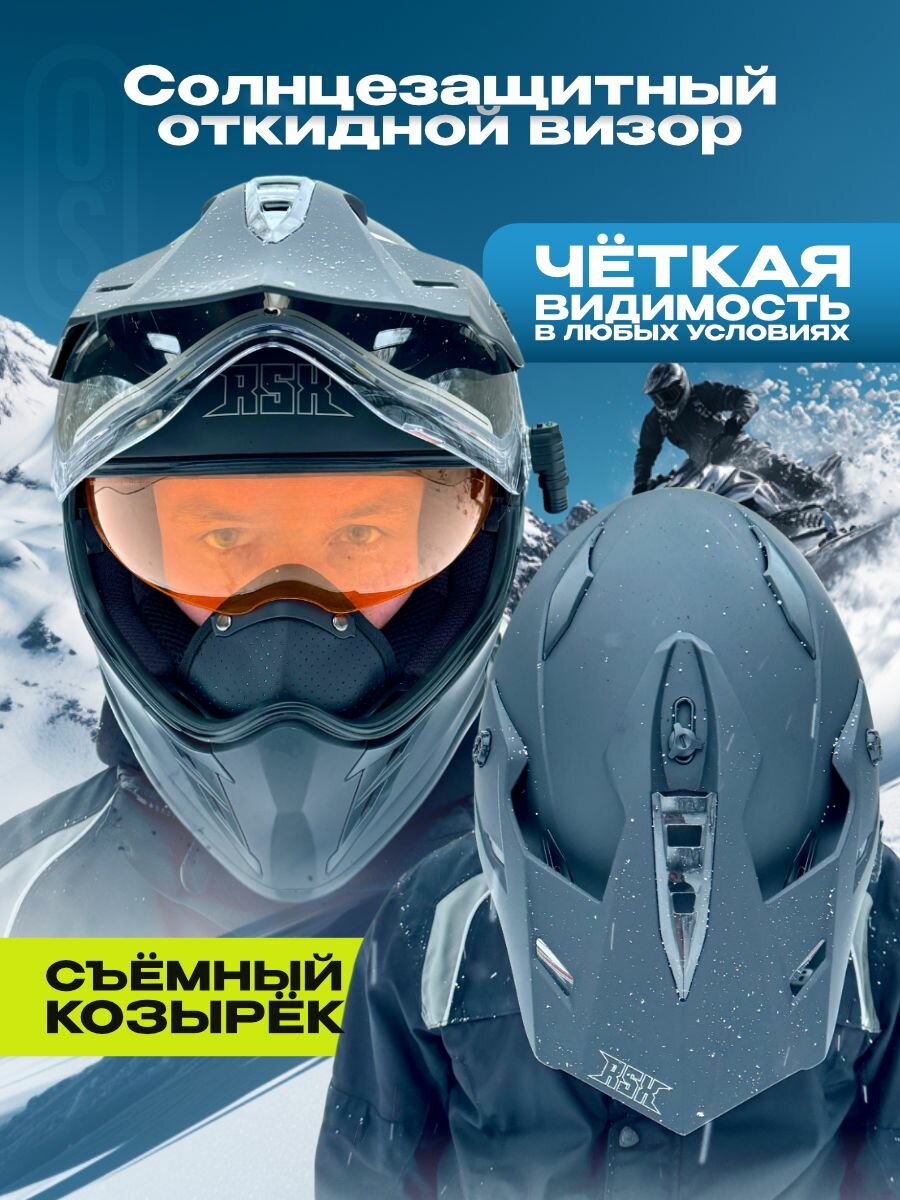 Шлем для снегохода RSX Iceman Winter двойное стекло с подогревом мотошлем черный матовый M: сравнение цен, характеристики, фото, актуальное наличие и цены.