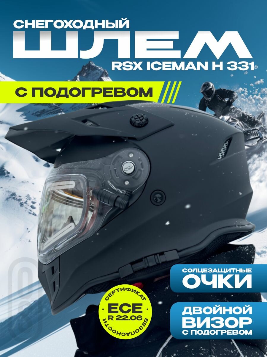 Купить Шлем для снегохода RSX Iceman Winter двойное стекло с подогревом мотошлем черный матовый M с доставкой по всей России.