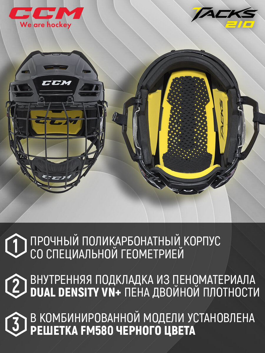 Шлем игрока хоккейный защитный с маской CCM HTC TACKS 210 SR BK, размер M (55.5-60 см), взрослый, черный: сравнение цен, характеристики, фото, актуальное наличие и цены.