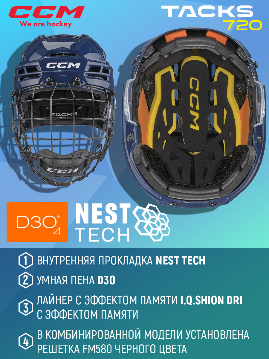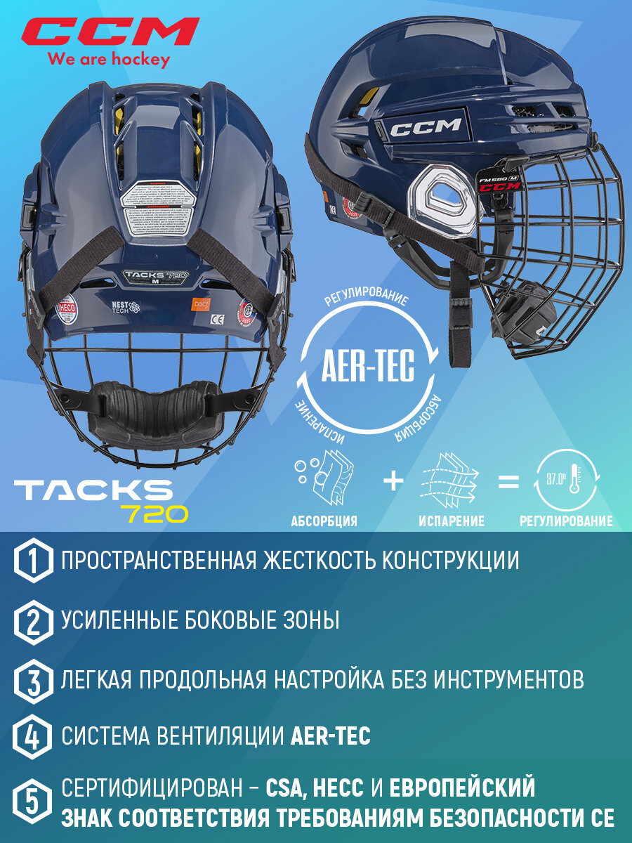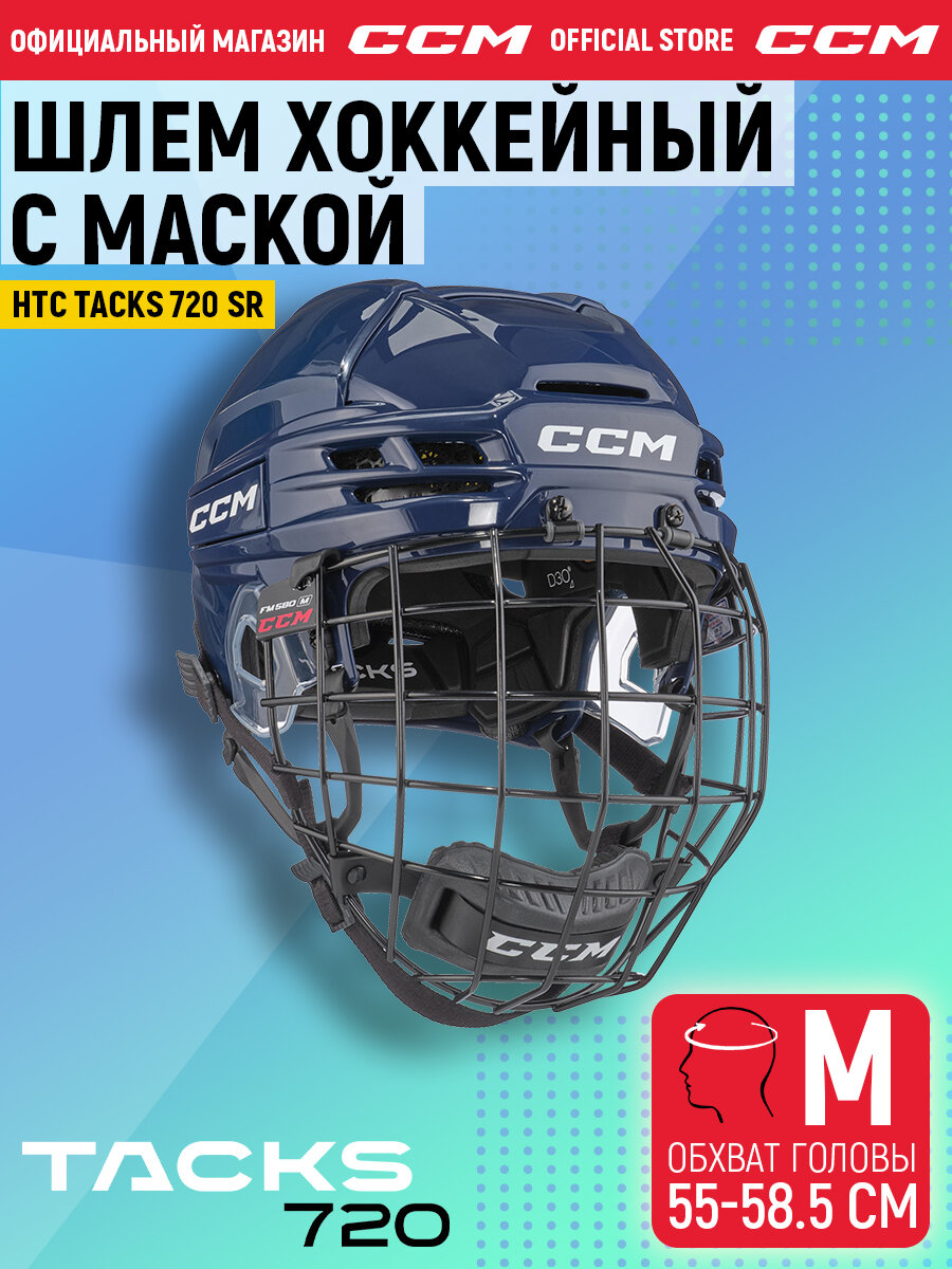 Шлем игрока хоккейный защитный с маской CCM HTC TACKS 720 SR NV, размер M (55-58.5 см), взрослый, темно-синий: сравнение цен, характеристики, фото, актуальное наличие и цены.