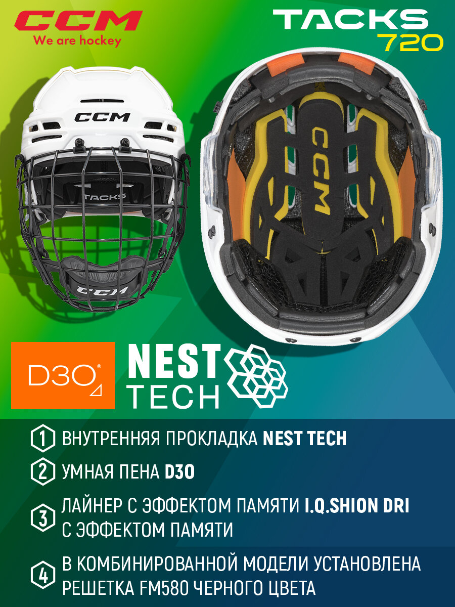 Шлем игрока хоккейный защитный с маской CCM HTC TACKS 720 SR WH, размер L (58-62 см), взрослый, белый: сравнение цен, характеристики, фото, актуальное наличие и цены.
