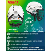 Шлем игрока хоккейный защитный с маской CCM HTC TACKS 720 SR WH, размер L (58-62 см), взрослый, белый