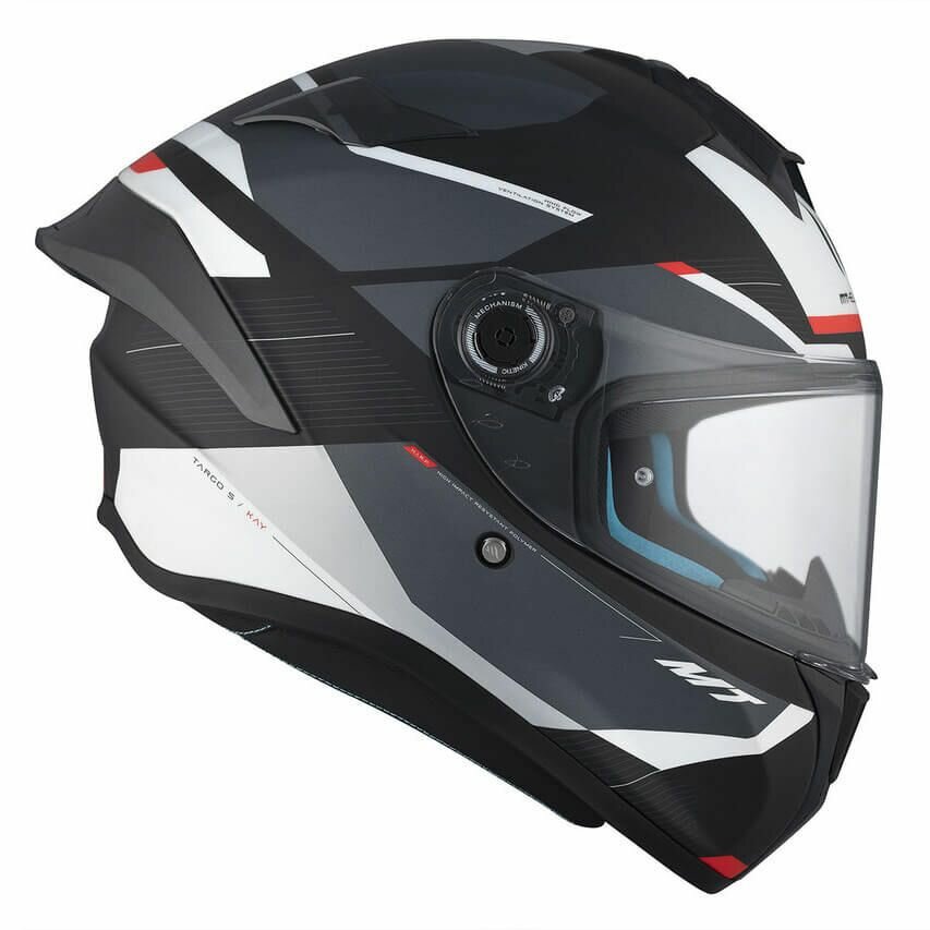 Новый MT Targo S – это естественная эволюция популярной модели Targo Pro. Модель сохранила все преимущества Targo Pro и получила значительные улучшения дизайна, аэродинамики и получала новейший сертификат безопасности ECE 22.06. Также шлем получил современный интерьер и революционную систему визора MT-QVSS, место для универсальной гарнитуры Bluetooth. Новый Targo S – это спортивная модель начального уровня, предлагающая функции гоночного шлема и высокого уровня защиты.
