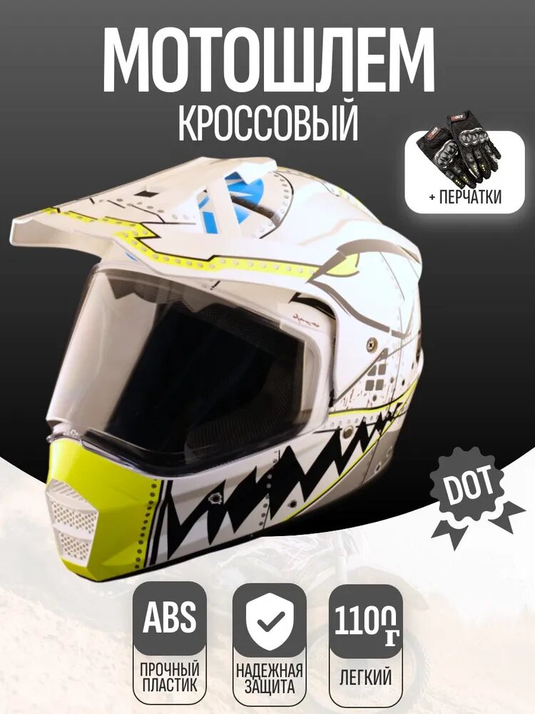 Купить Шлем кроссовый для мотоцикла, c визором прозрачный, + перчатки, белый, желтый, размер L с доставкой по всей России. Шлем кроссовый для мотоцикла, c визором прозрачный, + перчатки, белый, желтый, размер L: сравнение цен, характеристики, фото, актуальное наличие и цены.