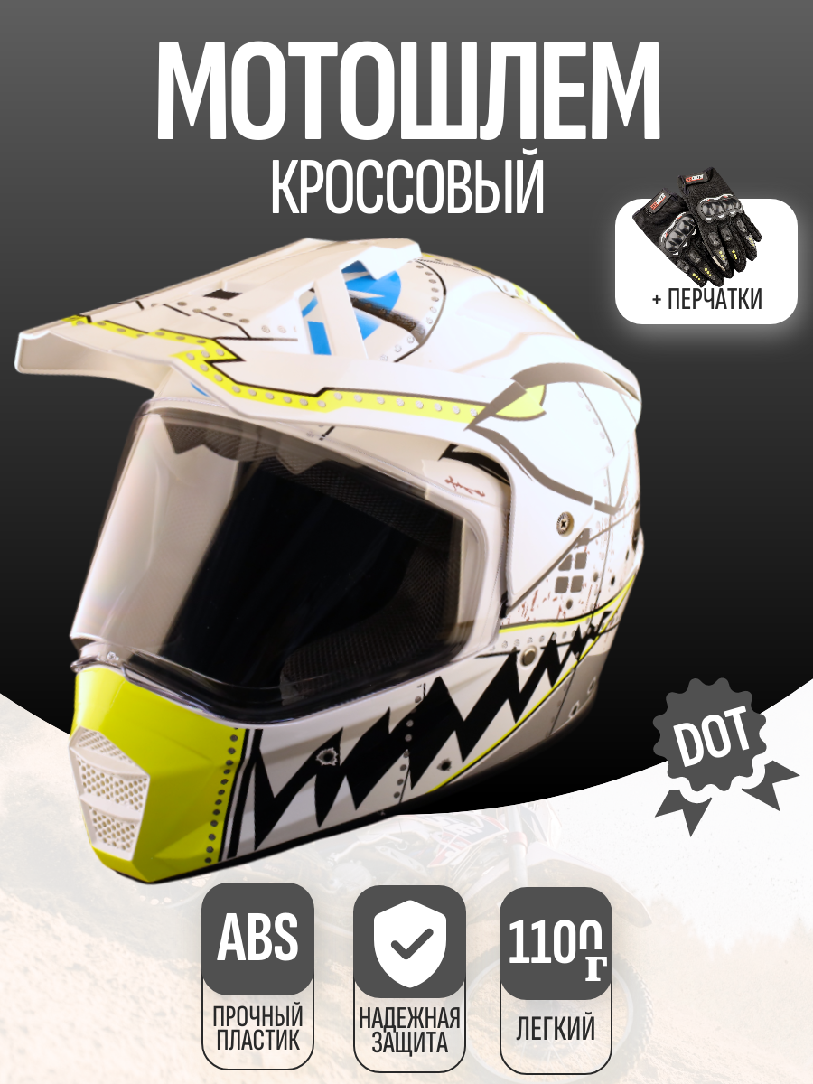 Шлем кроссовый для мотоцикла, c визором прозрачный, + перчатки, белый, желтый, размер XL: сравнение цен, характеристики, фото, актуальное наличие и цены.